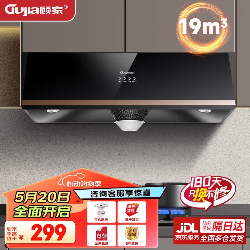 顾家油烟机中式抽油烟机厨房吸油烟机大吸力排油烟机抽烟机家用小尺寸710 经典按键+19立方-上门安装价格:298.00元!