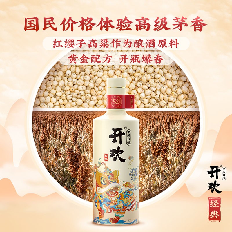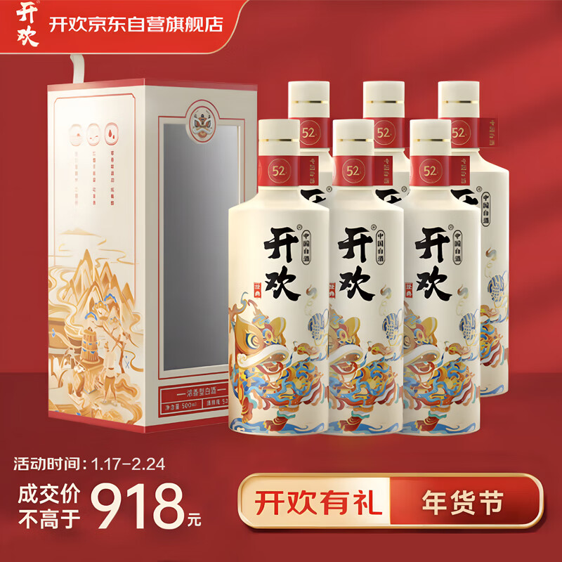 开欢经典系列 浓香型白酒 52度 500ml*6瓶 整箱装价格:908.00元!