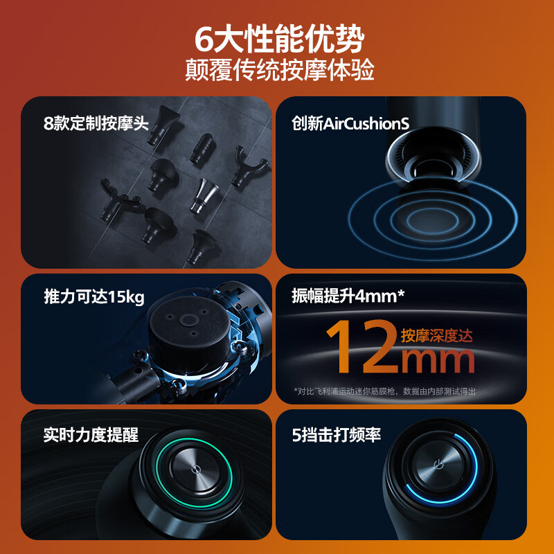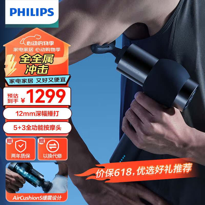 飞利浦(PHILIPS)肌肉放松按摩抢运动筋膜枪全身颈部肩部肌肉训练按摩仪运动健身捶打礼品高端节日送礼礼物5201G价格:1499.00元!