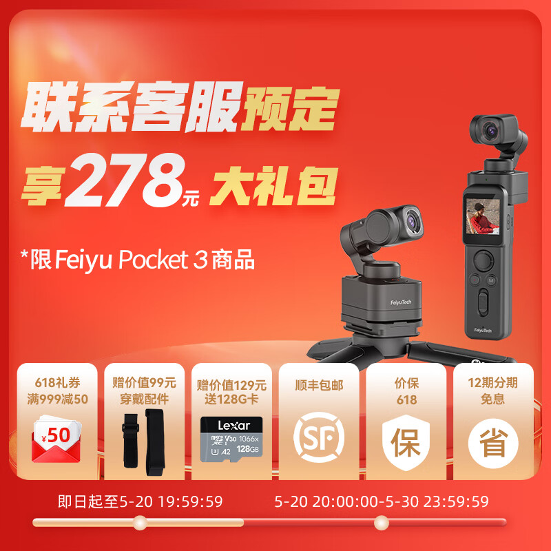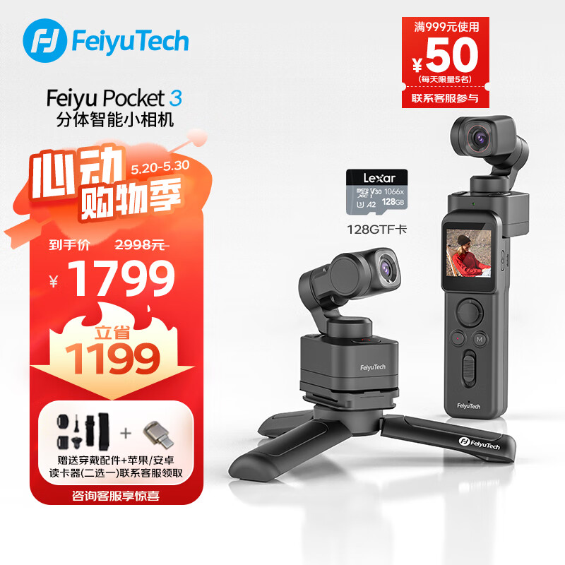 FeiyuTech飞宇Feiyu pocket3口袋云台相机骑行户外运动相机手持可分离摄像头高清增稳vlog摄影机 标配+TF卡价格:1899.00元!