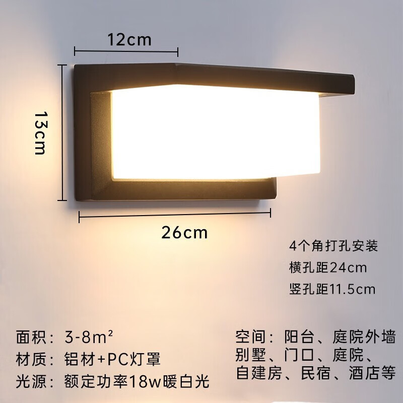 灯力 LED户外壁灯欧式北欧室外防水过道楼梯庭院现代简约阳台走廊卧室 市电款铝材-暖光18w-LED光源价格:149.00元!