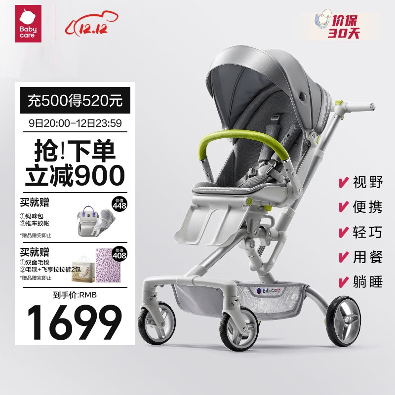 babycare婴儿头等舱推车遛娃遛神器溜娃童车可坐可躺双向推行-冰霜银价格:2499.00元!