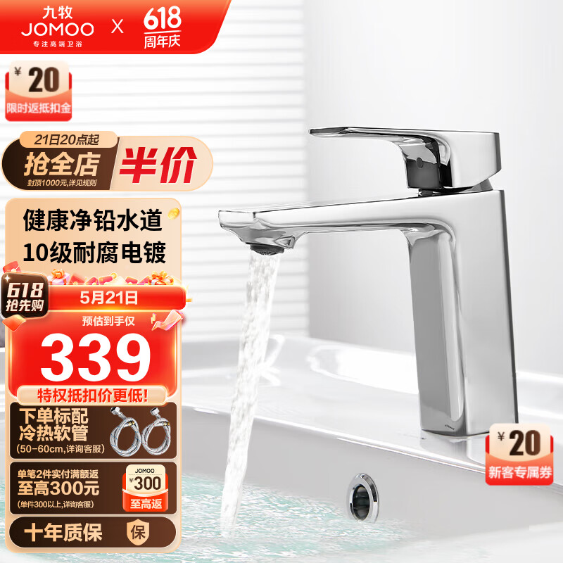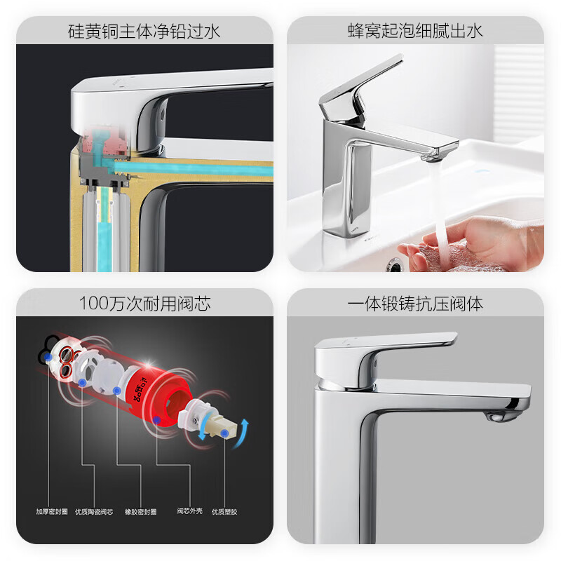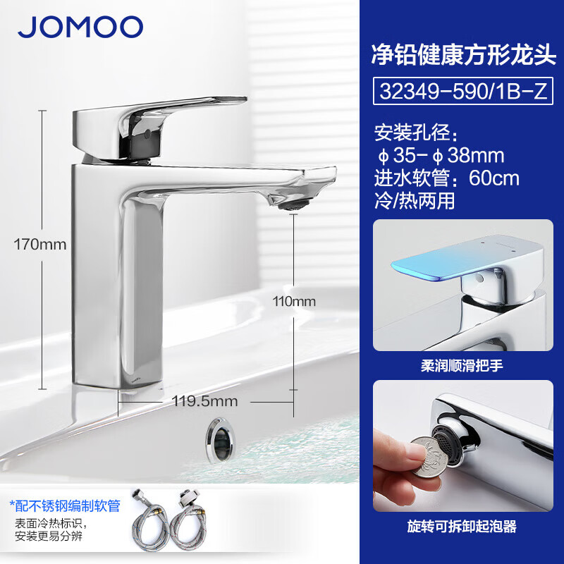 九牧(JOMOO)卫浴龙头台盆硅黄铜冷热单把方形手柄面盆龙头32349-590/1B-Z价格:389.00元!