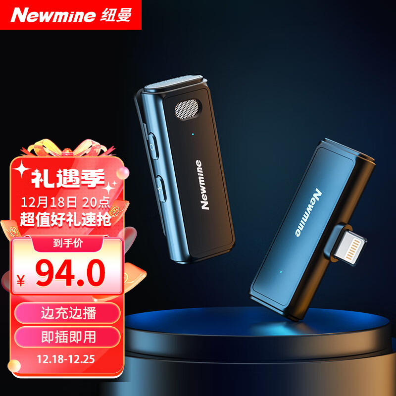 纽曼MC82plus无线领夹麦克风手机直播专业录音户外短视频K歌收音设备降噪随身无线话筒一拖一lightning版价格:99.00元!