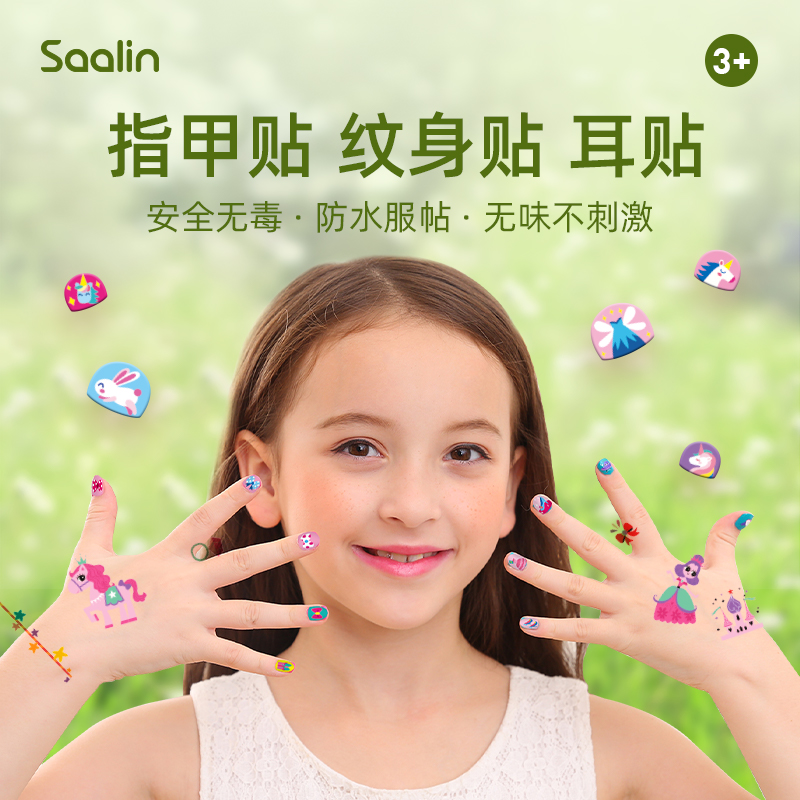莎林SAALIN 儿童指甲贴卡通美甲油套装防水可撕拉公主女孩玩具价格:39.00元!