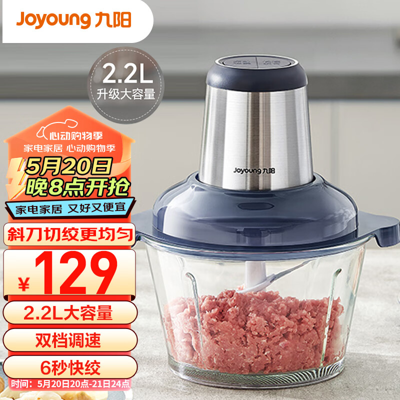 九阳(Joyoung)绞肉机家用 绞馅机 碎肉机 电动多功能料理搅拌打肉饺子肉馅蒜蓉机不锈钢 搅肉机S22-LA309价格:129.00元!
