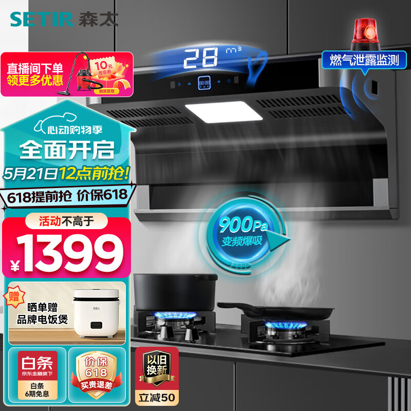 森太(SETIR)抽油烟机 顶侧双吸直流变频7字型油烟机大静压巡航增压家用吸油烟机 【800宽小尺寸户型】B812BQL 【智能直流变频】价格:1799.00元!