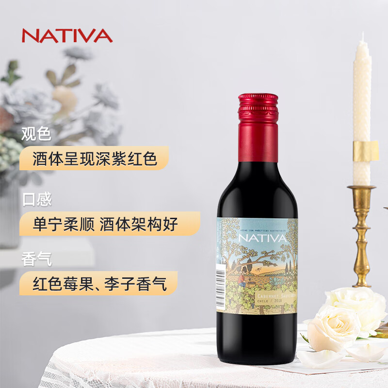 NATIVA智利 娜缇瓦 精选赤霞珠干红葡萄酒 187.5ml 小瓶品饮装价格参考: