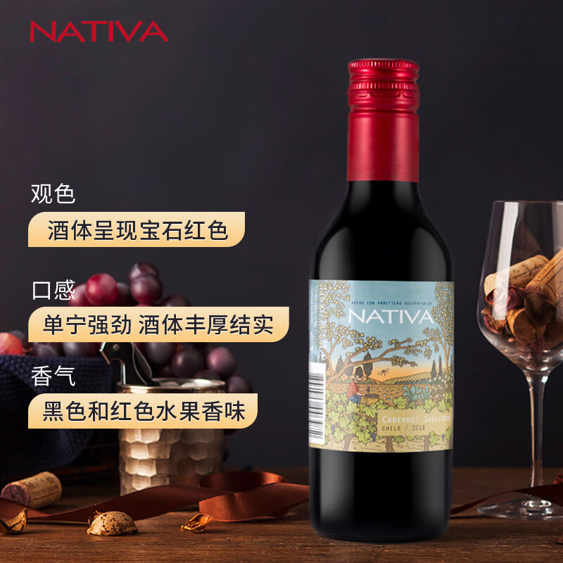 NATIVA娜缇瓦 赤霞珠小瓶干红葡萄酒 187.5ml 品饮装 智利原瓶进口红酒价格:25.00元!