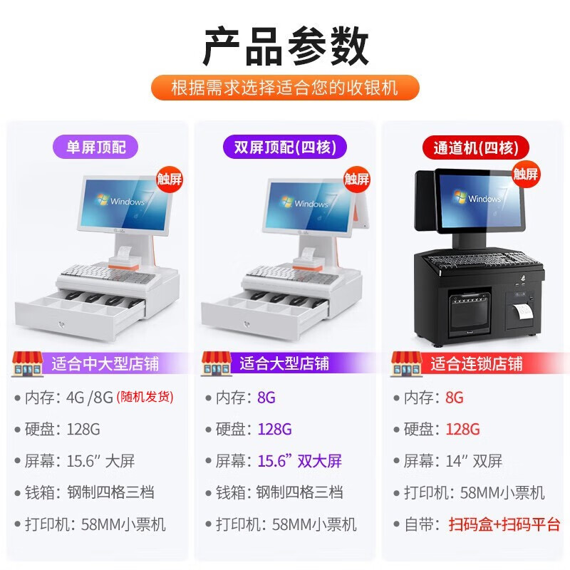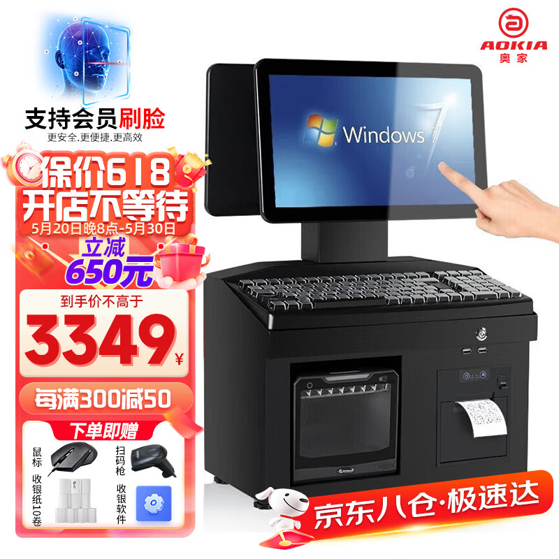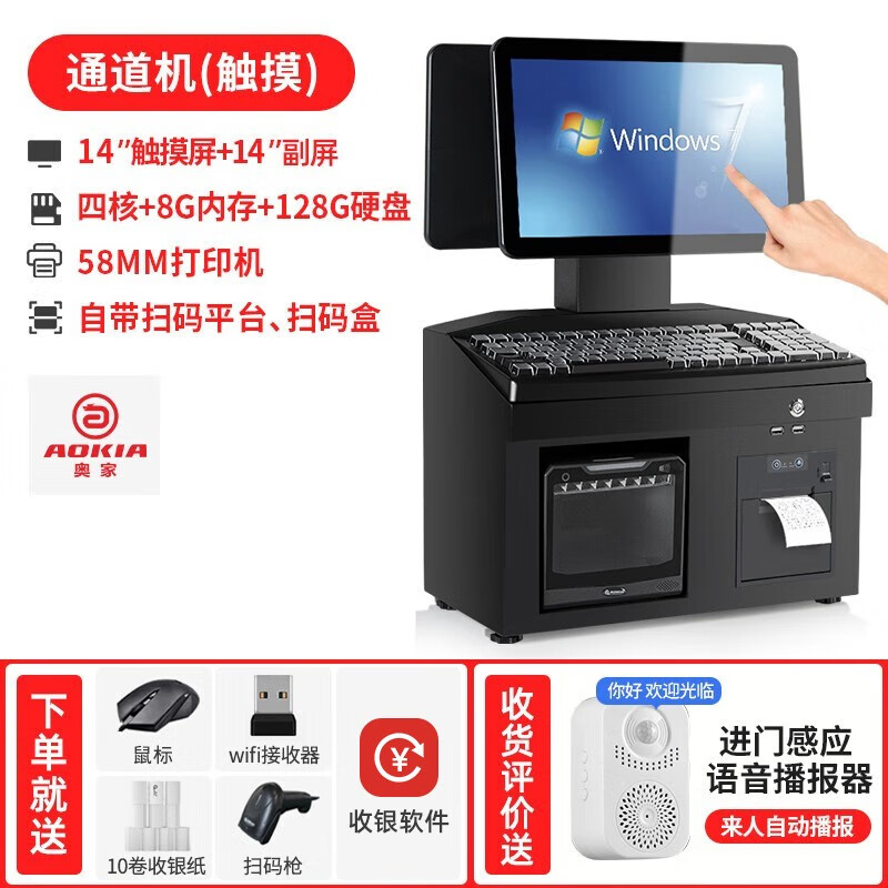 奥家收银机一体机零售超市便利店烟酒药店餐饮点菜收款机收钱扫码软件收银电脑会员管理系统 触摸)双屏通道机【带支付盒+ 扫码平台】+云端收银价格:3999.00元!