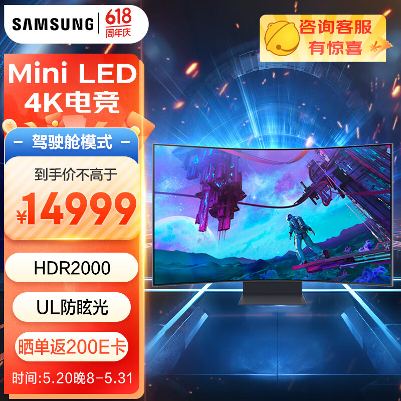 三星(SAMSUNG)55英寸 MiniLED 165Hz 4K 1ms(GTG) G97NC 玄龙骑士 Ark2.0 曲面 电竞 显示器 LS55CG970NCXXF价格:15999.00元!