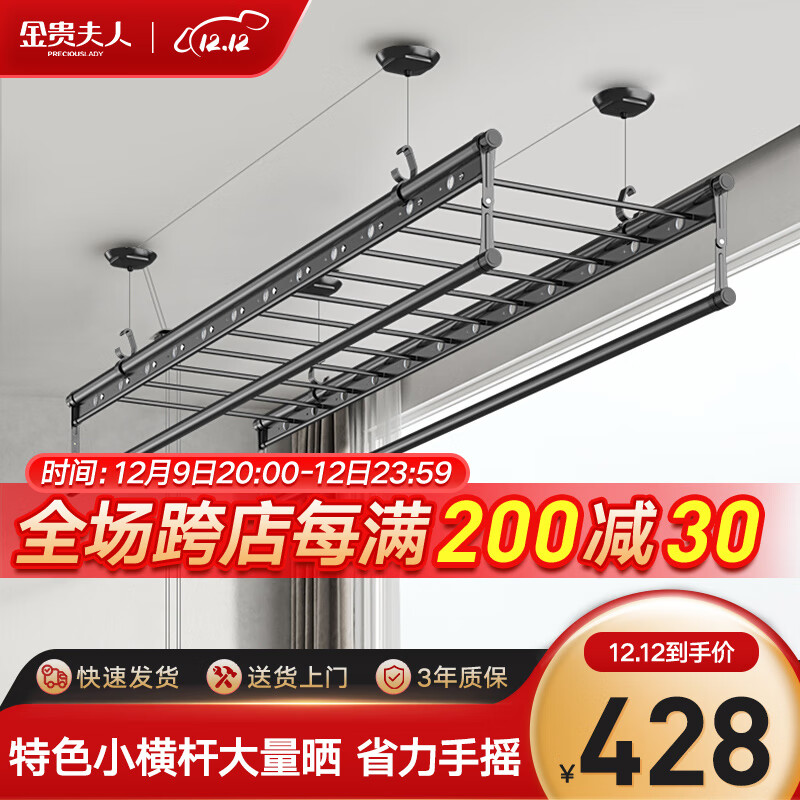 金贵夫人升降晾衣架阳台手摇晾衣杆四杆室内折叠晒衣架凉 2.7米+10个衣架价格:488.00元!