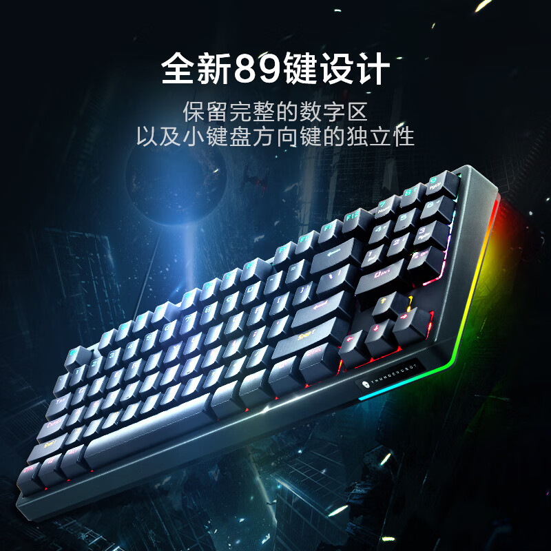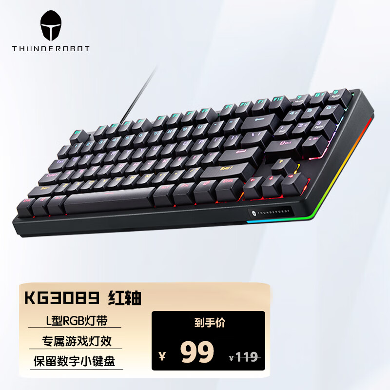 雷神(ThundeRobot)有线游戏机械键盘KG3089R红轴 幻彩版 电竞89键全键无冲 炫酷混光L型RGB灯带 办公吃鸡价格:98.00元!