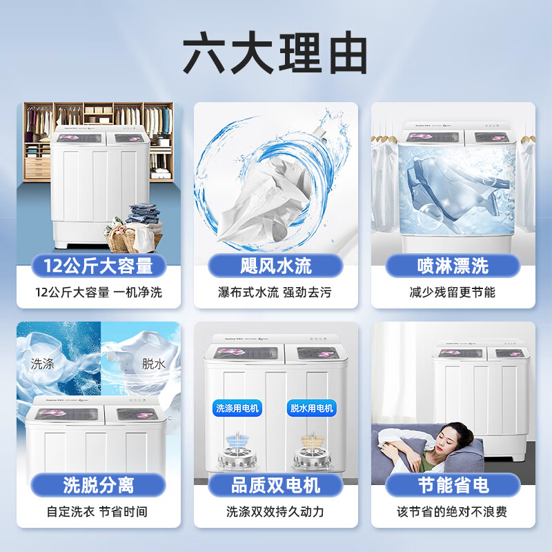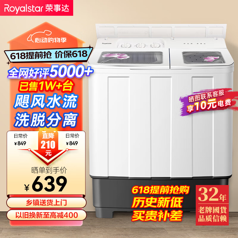 荣事达(Royalstar)洗衣机 12公斤双筒家用双缸半自动双桶洗衣机大容量甩干机 以旧换新 白色 RP12030JGA价格:649.00元!