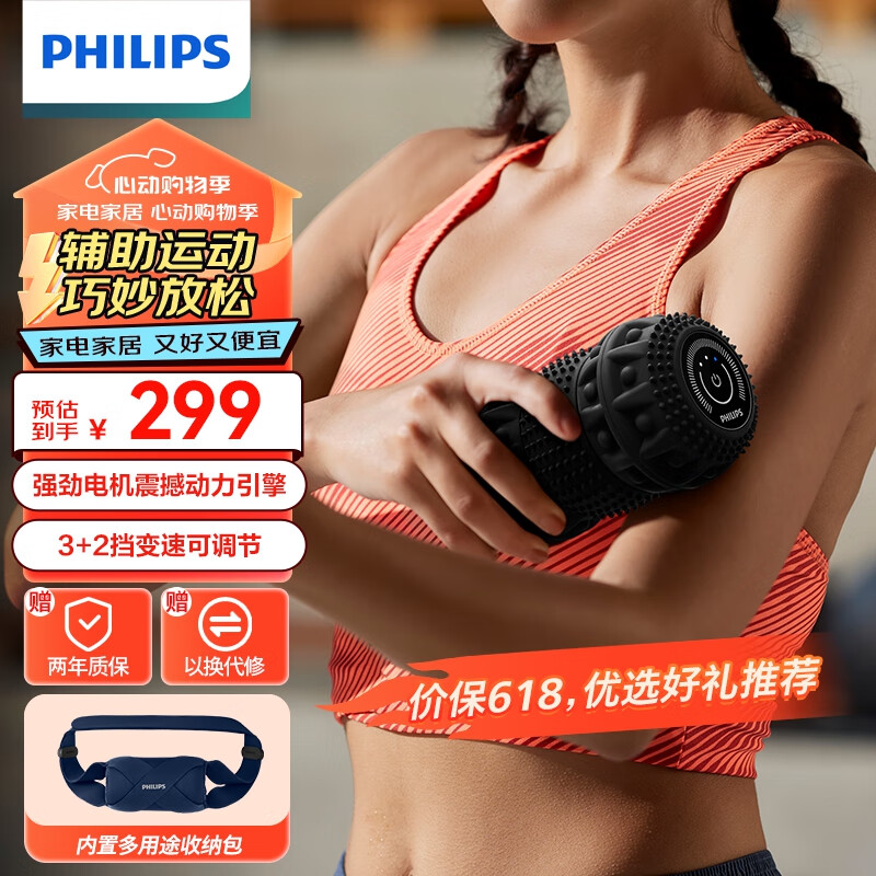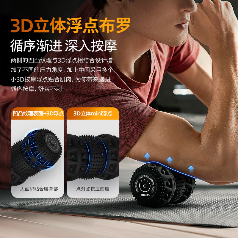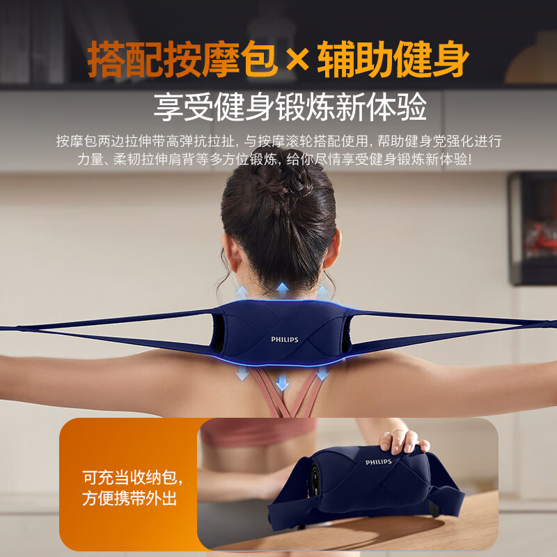 飞利浦(PHILIPS)滚轮肌肉按摩器 全身肌肉颈椎筋膜滚压放松器 肩颈腿腰健身运动生日礼物节日送礼礼物礼品3601G价格:349.00元!
