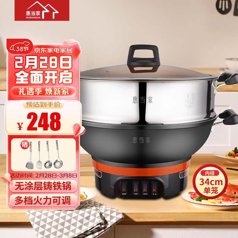 惠当家(Hui Dang Jia)电炒锅多功能电热锅电锅加厚电蒸锅电煮锅一体铸铁锅电火锅多用途锅Z08-34价格:248.00元!