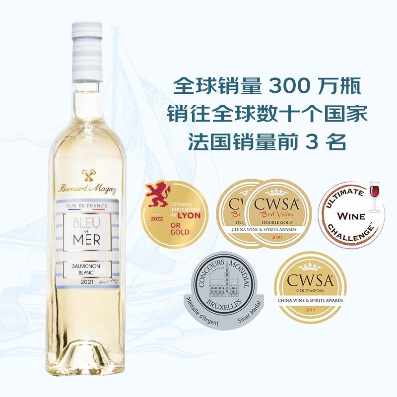 贝玛格雷(Bernard Magrez)【海外直采】法国奥克碧海蓝天干白葡萄酒750ml单瓶价格:69.00元!