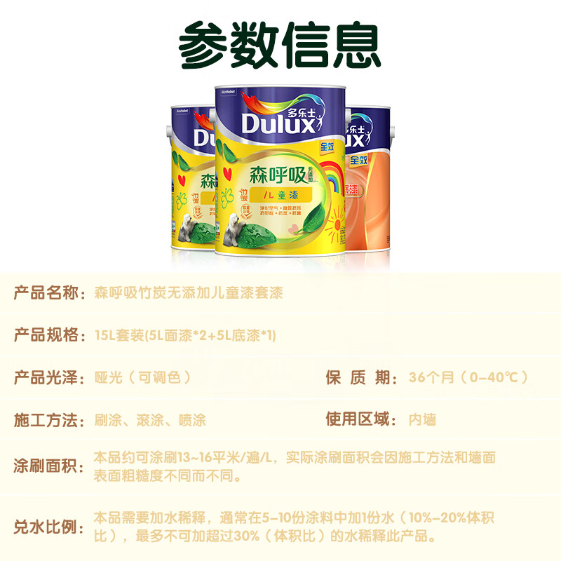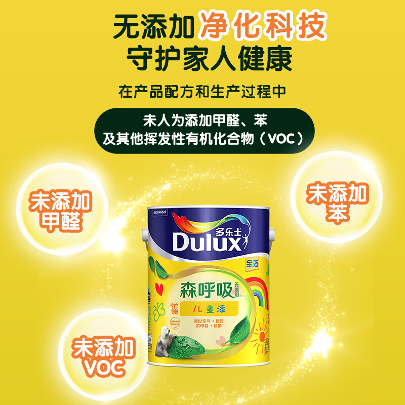 多乐士(Dulux)竹炭森呼吸无添加儿童漆内墙乳胶漆油漆涂料墙漆A8106套装15L价格:2099.00元!