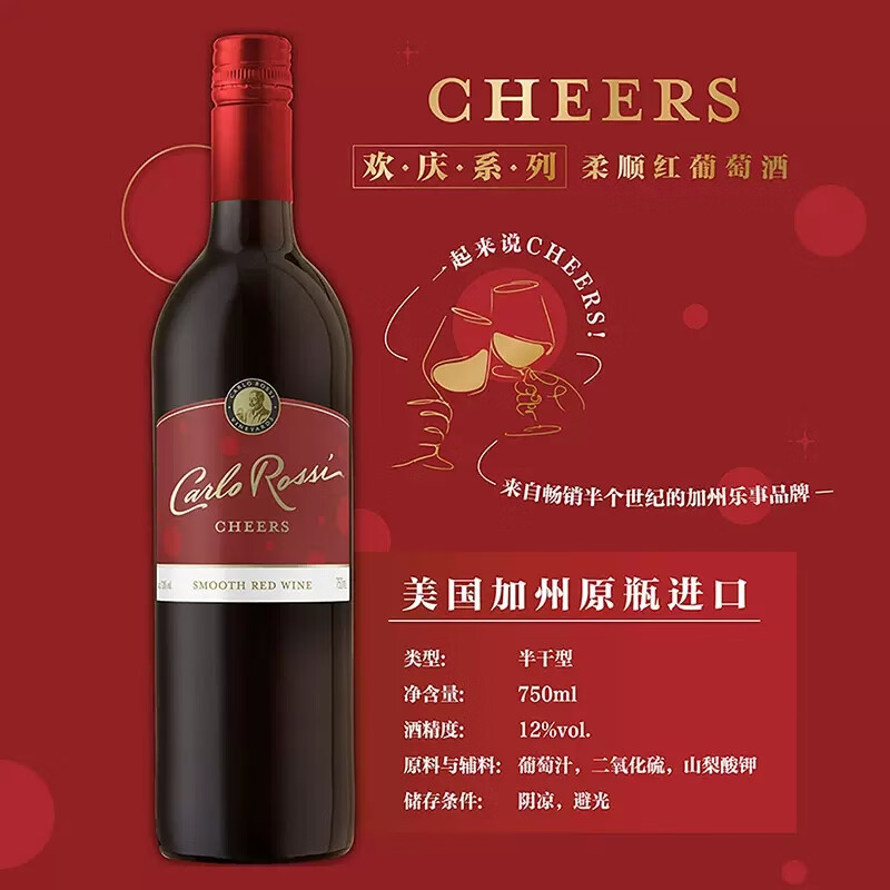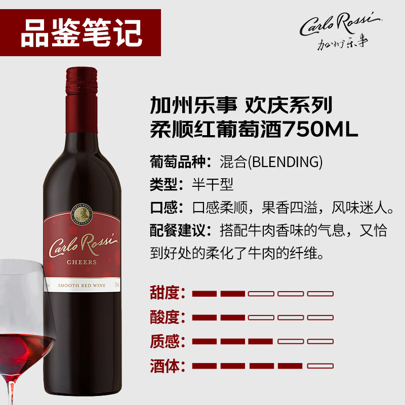 加州乐事 欢庆系列红酒 柔顺红葡萄酒 原瓶进口 750ml价格:59.00元!