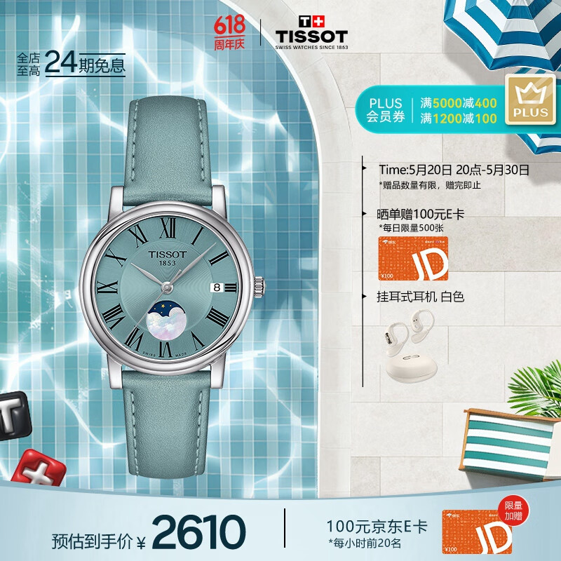 天梭(TISSOT)手表 卡森臻我系列皮带石英女表 520送女友T122.223.16.353.00价格:2900.00元!