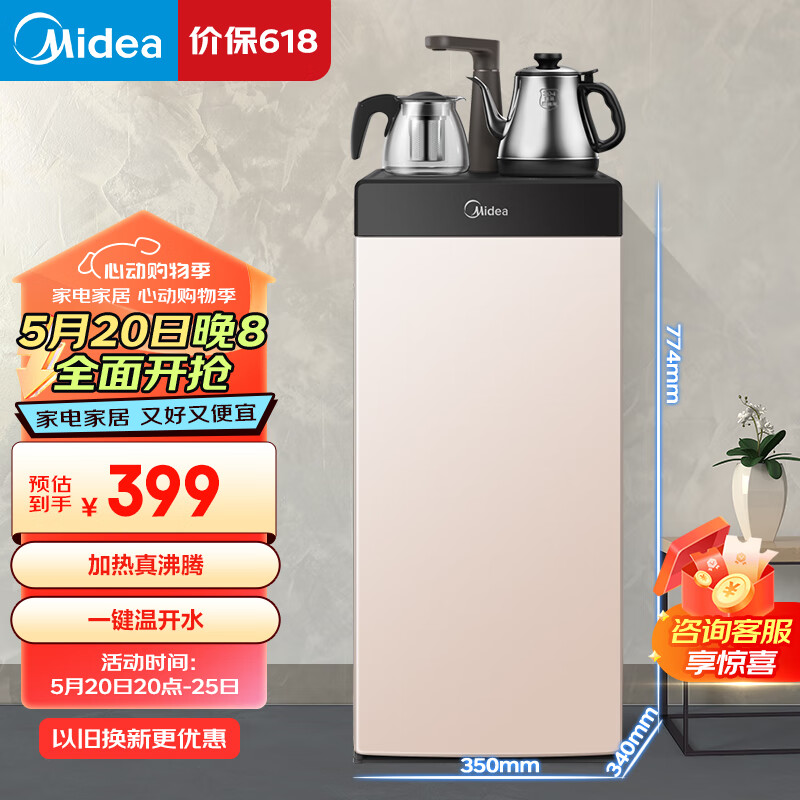 美的(Midea)茶吧机饮水机家用下置式桶装水抽水器上水器可旋转出水饮茶机立式温热型 YR1206S-X价格:399.00元!