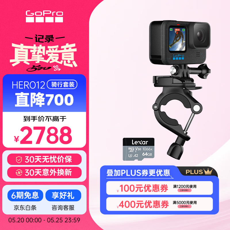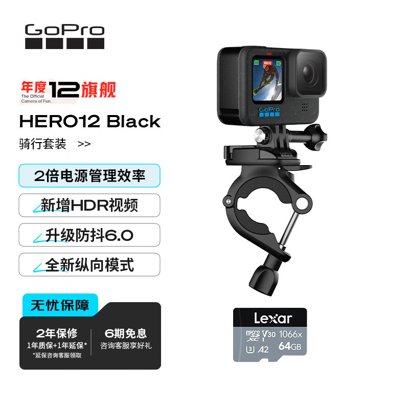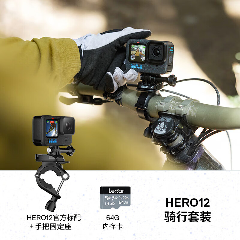 GoPro HERO12 Black运动相机 户外潜水滑雪防抖相机 防水vlog照相机 户外骑行套装【手把固定座+64G卡】价格:2788.00元!