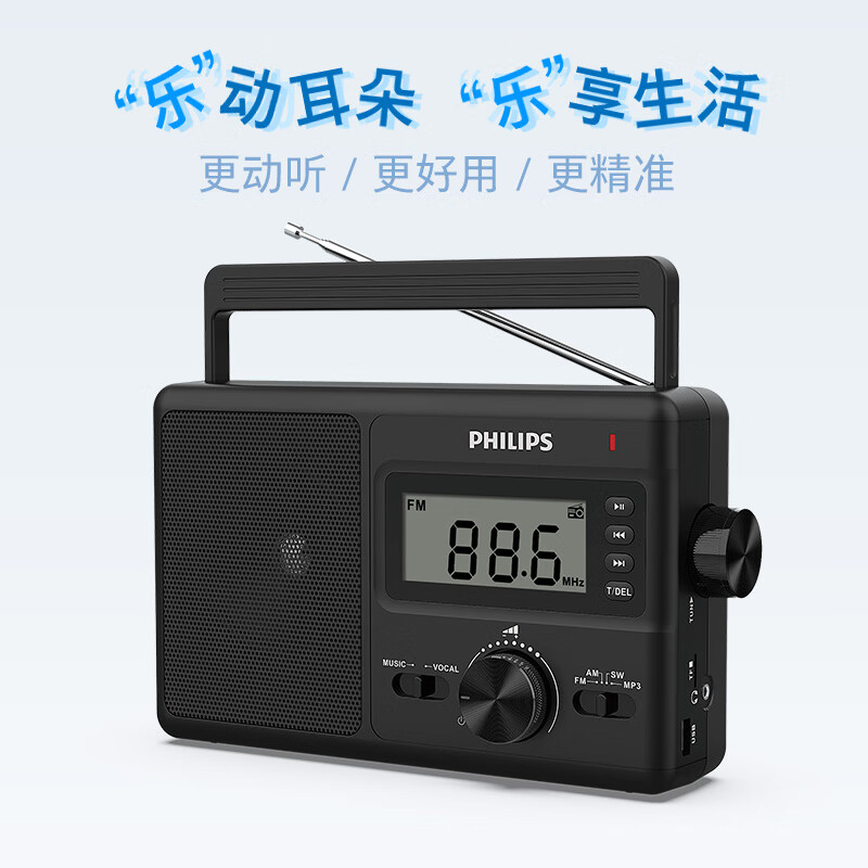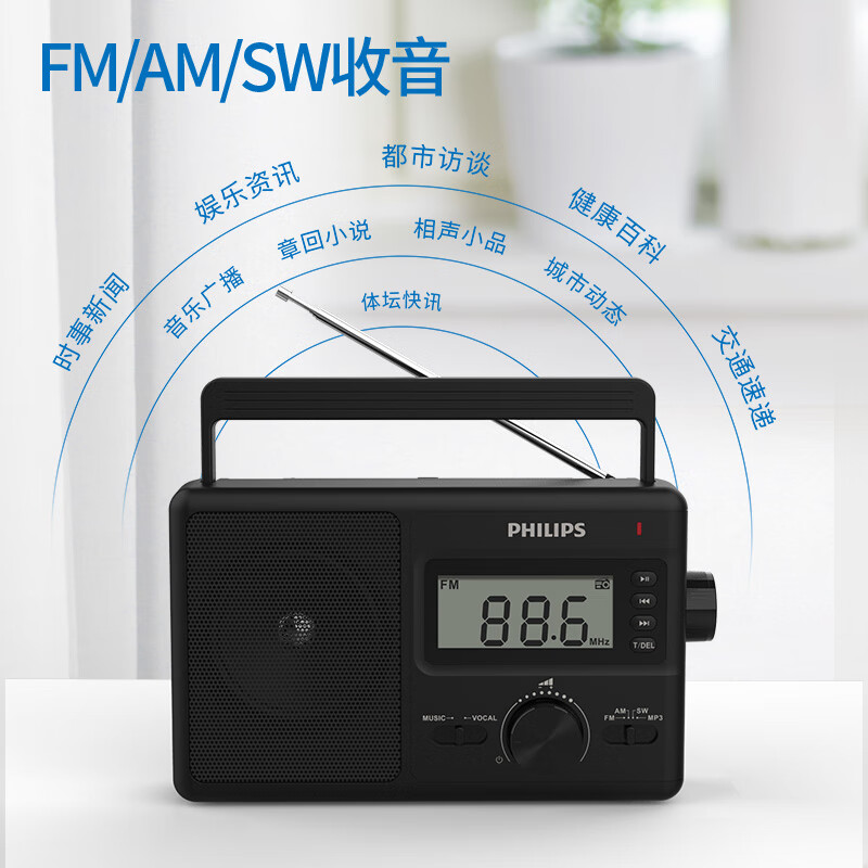 飞利浦(PHILIPS)TAR3368全波段收音机 台式收音机 数字调频多功能U盘TF卡老人手提交直两用半导体收音机音箱价格:299.00元!