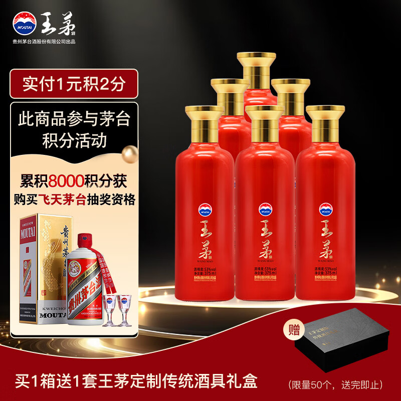茅台 王茅 祥泰红茅 酱香型白酒 53度 375ml*6瓶 整箱装 商务送礼价格:2993.00元!
