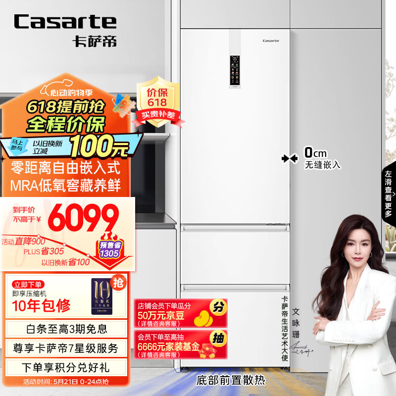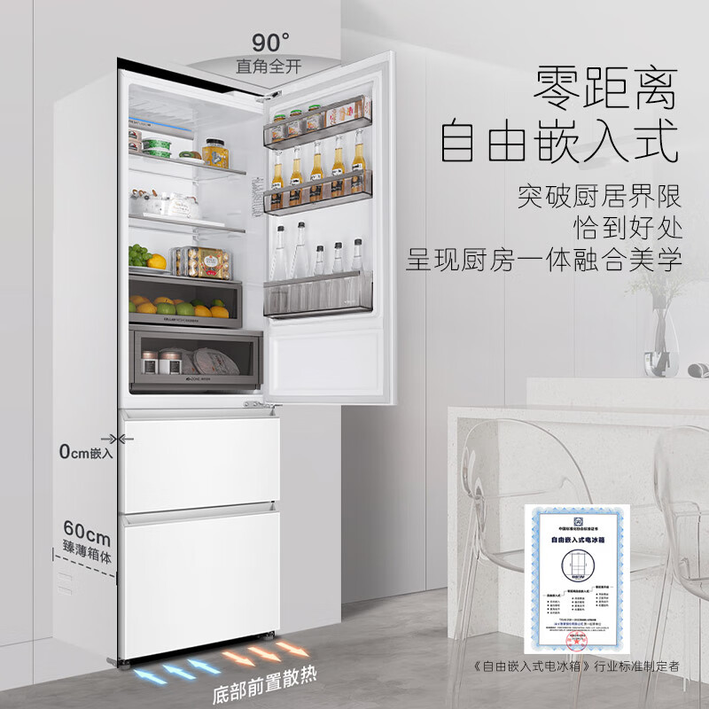 卡萨帝(Casarte)380升超薄零嵌入式多门三开门租房用小型3-4人白色一级能效家用无霜电冰箱BCD-380WLCI374WKU1价格:6699.00元!