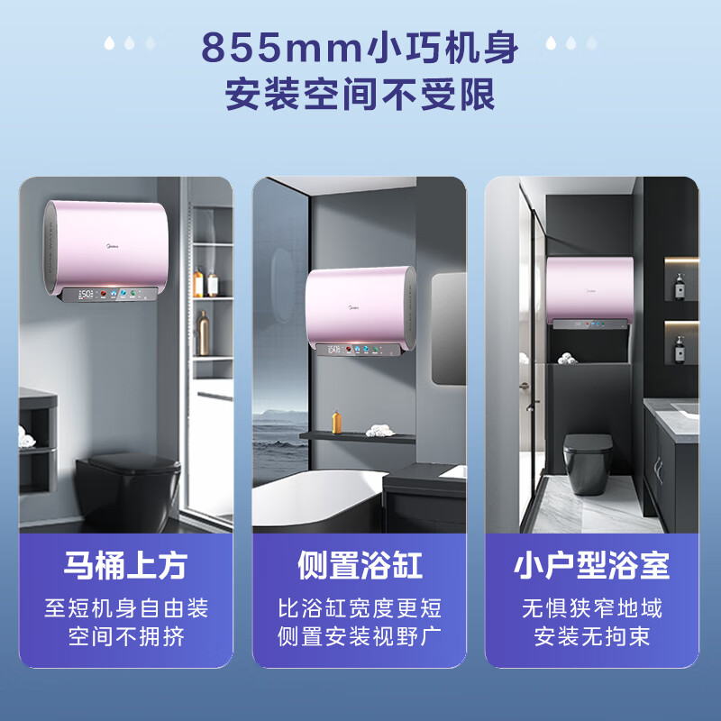 美的(Midea)80升玲珑超薄双胆扁桶电热水器3300W变频 水电分离净滤镁棒免换一级能效F8033-UDmini(HE)京东小家价格:3099.00元!
