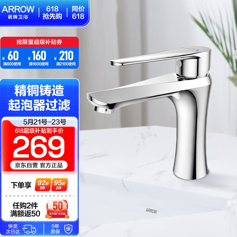 箭牌(ARROW) 精铜冷暖龙头面盆洗脸盆洗手池洗漱台卫生间洗手间厕所浴室柜 【热款】4141价格:269.00元!