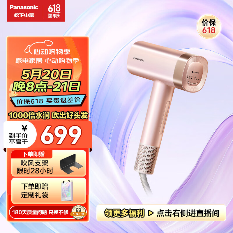 松下(Panasonic)高速吹风机家用大功率吹头发电吹风大风力速干护发纳诺怡护发新年礼物吹风筒紫色NW90绮光星焰粉价格:751.00元!