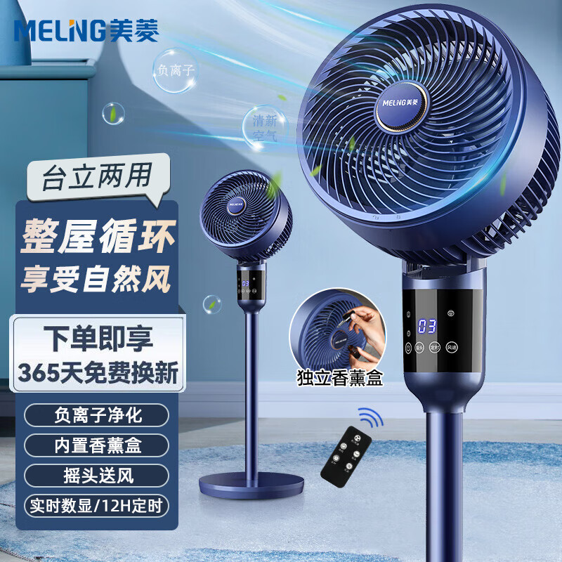 美菱MELNG 空气循环扇/家用电风扇落地卧室客厅负离子摇头轻音低噪节能立式电扇MPF-DZ2691遥控香薰款价格:139.00元!