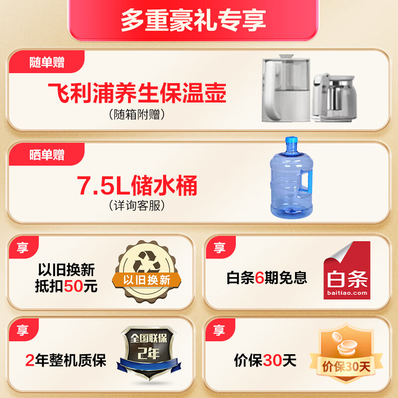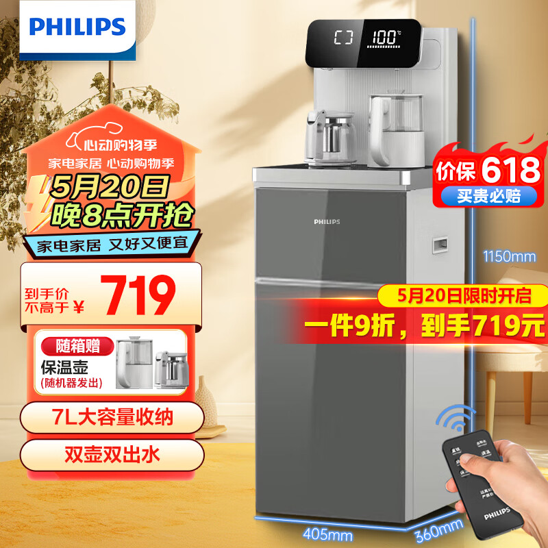 飞利浦(PHILIPS) 茶吧机 立式饮水机全自动智能下置水桶办公室家用饮水机 加热调温遥控自动上水 ADD4888价格:799.00元!