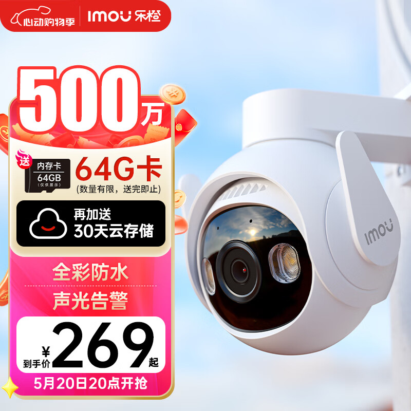 乐橙 监控摄像头室外 TS6-500万高清 商用家用户外室外无线监控器360度无死角带夜视全彩防水 声光告警价格:269.00元!