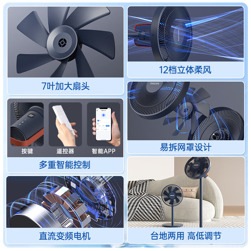 飞利浦(PHILIPS)电风扇落地扇家用七叶轻音台地两用立式APP智控电扇3D送风柔风节能大风量定时小风扇 ACR3142SF价格:689.00元!