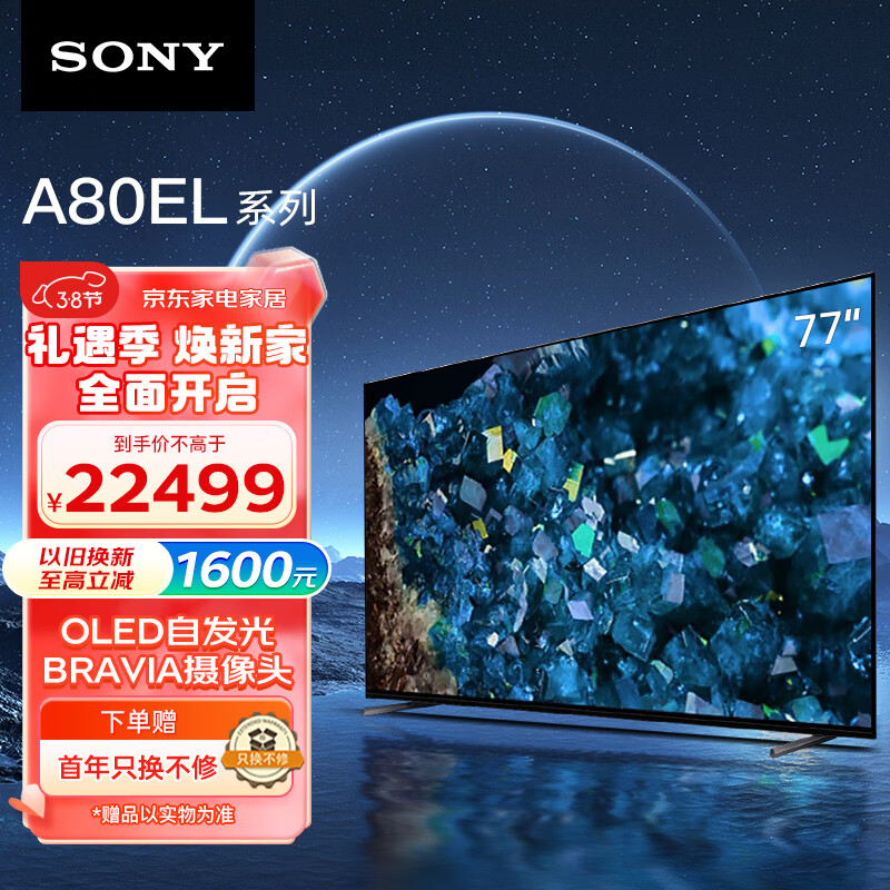索尼(SONY)77英寸4K OLED屏幕发声 XR认知芯片 搭载摄像头智能 游戏电视 (A80EK升级款)XR-77A80EL以旧换新价格:22499.00元!