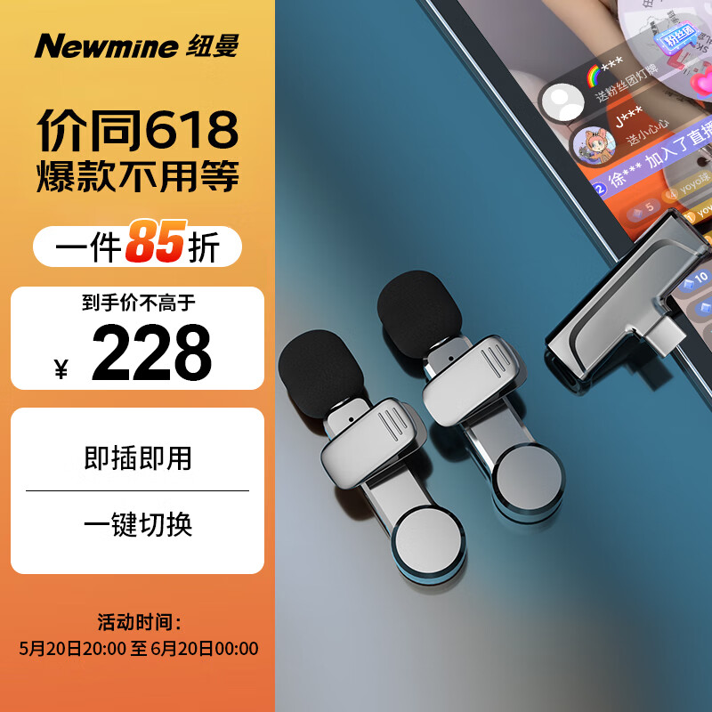 纽曼MC88无线领夹麦克风直播录音设备户外短视频vlog收音麦手机专用降噪随身无线话筒一拖二type-c版价格:269.00元!