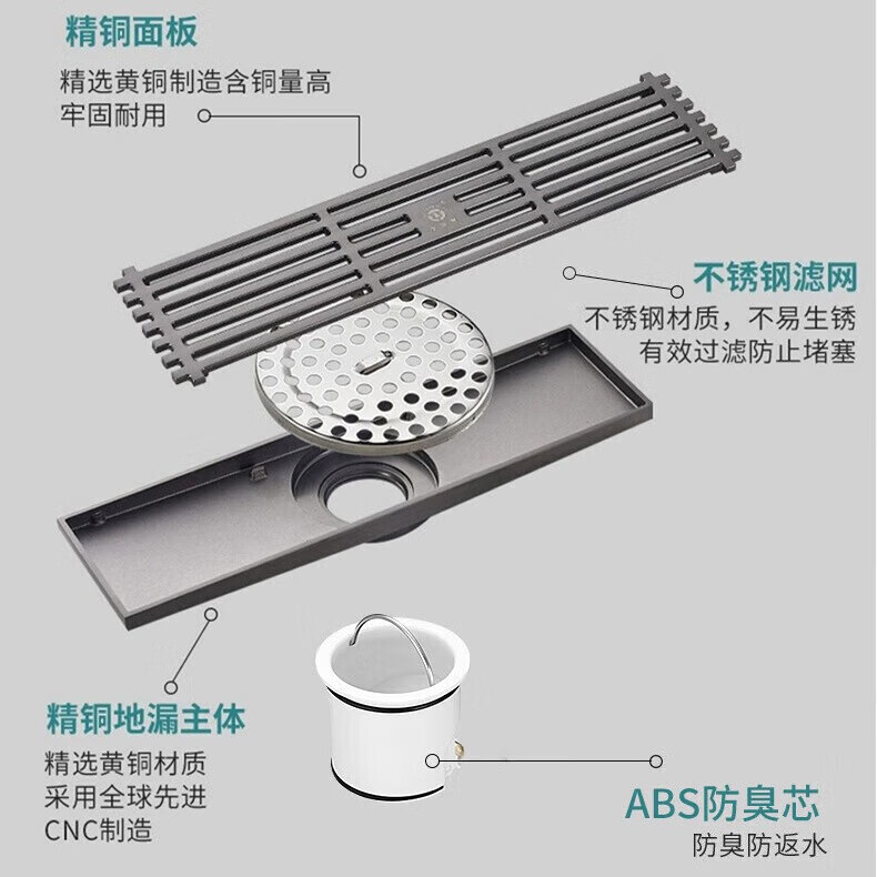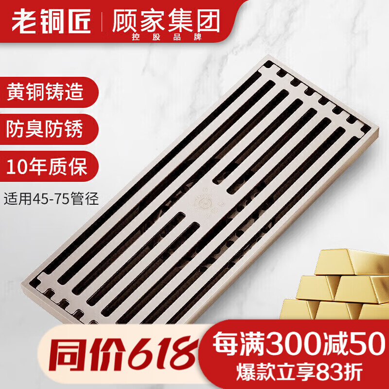 老铜匠顾家集团长条全铜地漏防臭卫生间淋浴房浴室长方形加长大排量条形价格:142.39元!