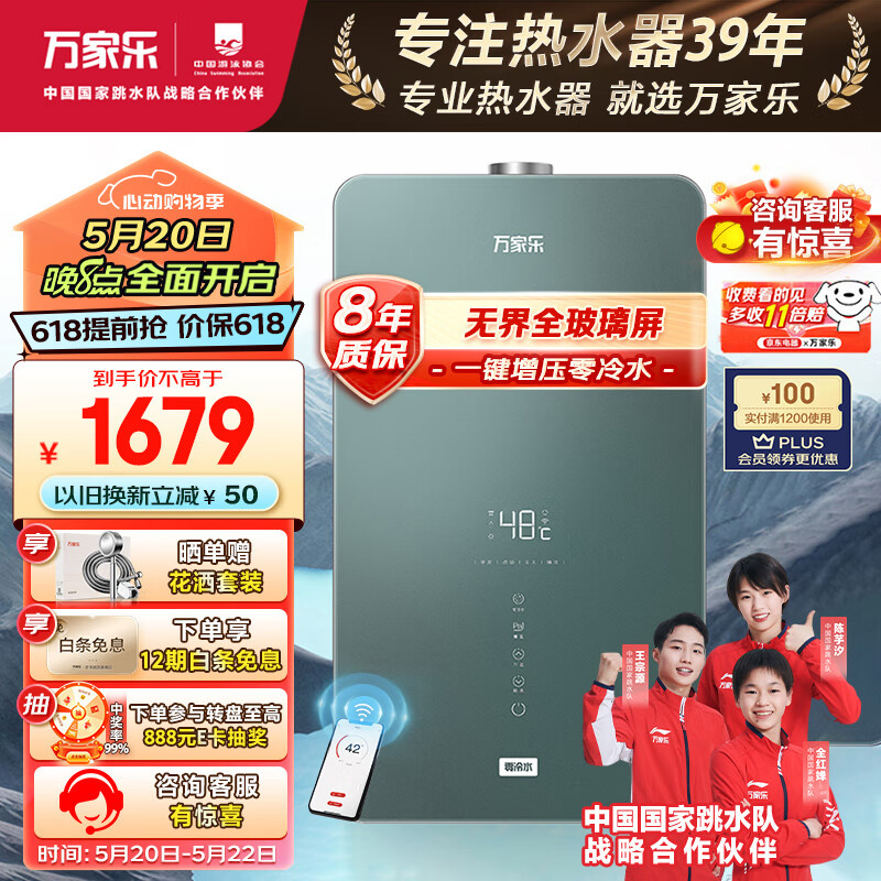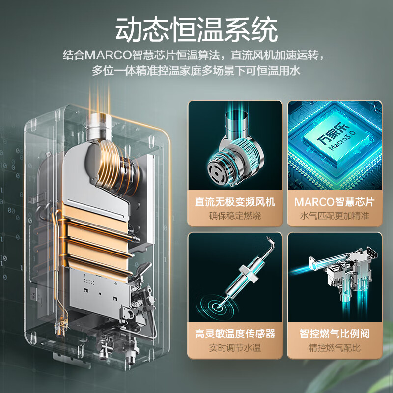 万家乐 16升零冷水燃气热水器天然气佛山标准产品京东小家智能增压超级大水量以旧换新JSQ30-16DL3价格:2278.00元!