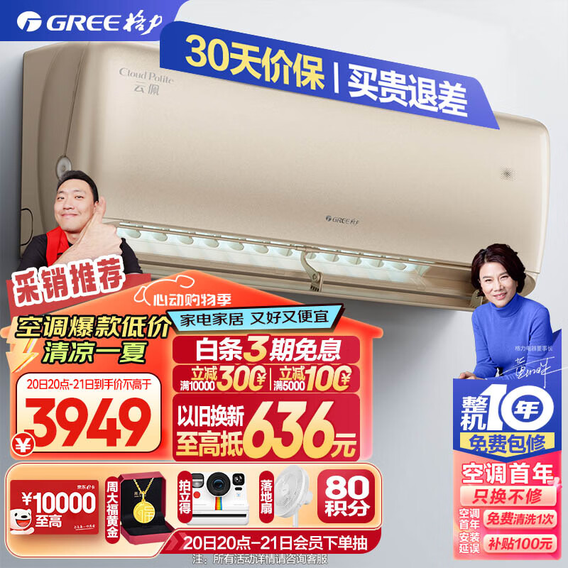 格力(GREE)空调 京东小家智能生态 1.5匹?云佩?新1级能效变频 壁挂式卧室挂机KFR-35GW/NhAh1BAj价格:3949.00元!