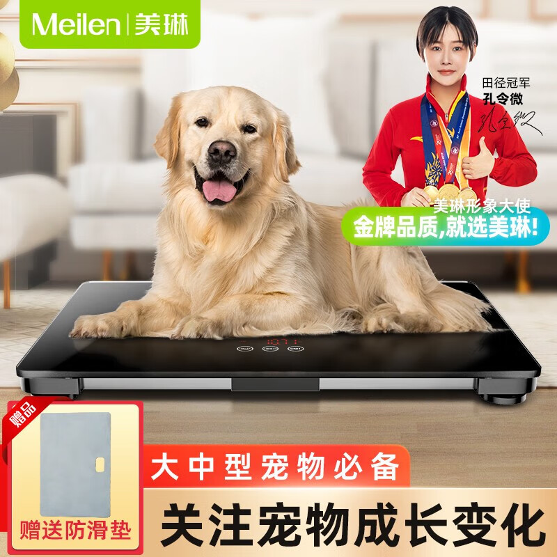 Meilen 宠物体重秤猫咪狗狗动物专用宠物称高精度婴儿称重器家用精准电子秤体重计陪伴成长 【店长推荐宠物医院专用】承重100kg-防滑垫价格:369.00元!