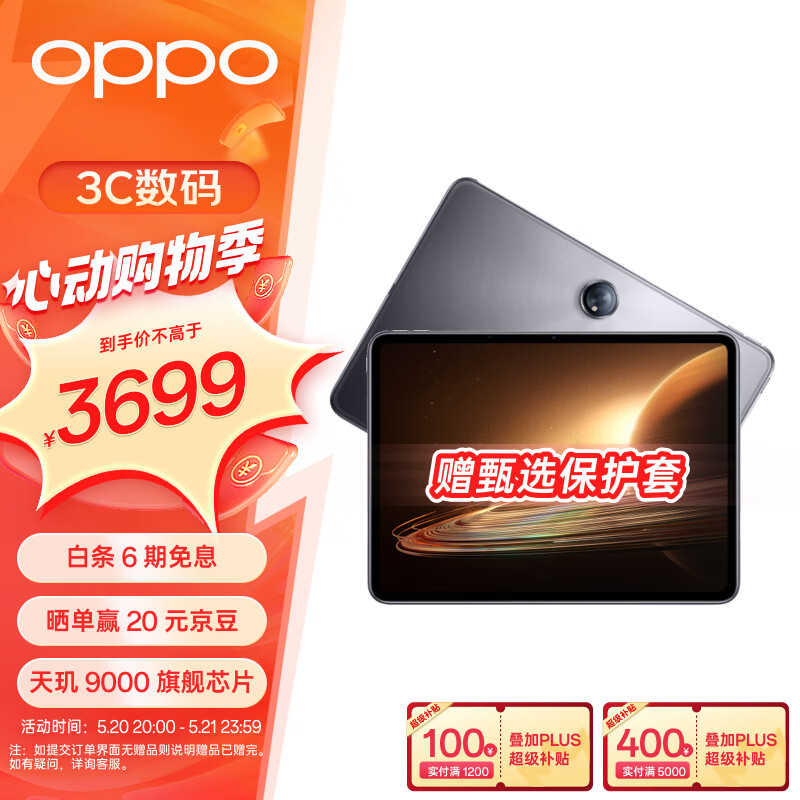 OPPO Pad 2 11.61英寸平板电脑(12GB+512GB 2.8K超高清大屏 9510mAh)星云灰 办公学习游戏平板 一加价格:3699.00元!