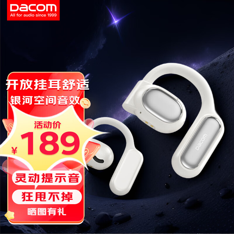 dacomFreeBeats运动蓝牙耳机不入耳开放式耳机跑步无线挂耳式气骨传导概念适用苹果华为小米 白色价格:199.00元!