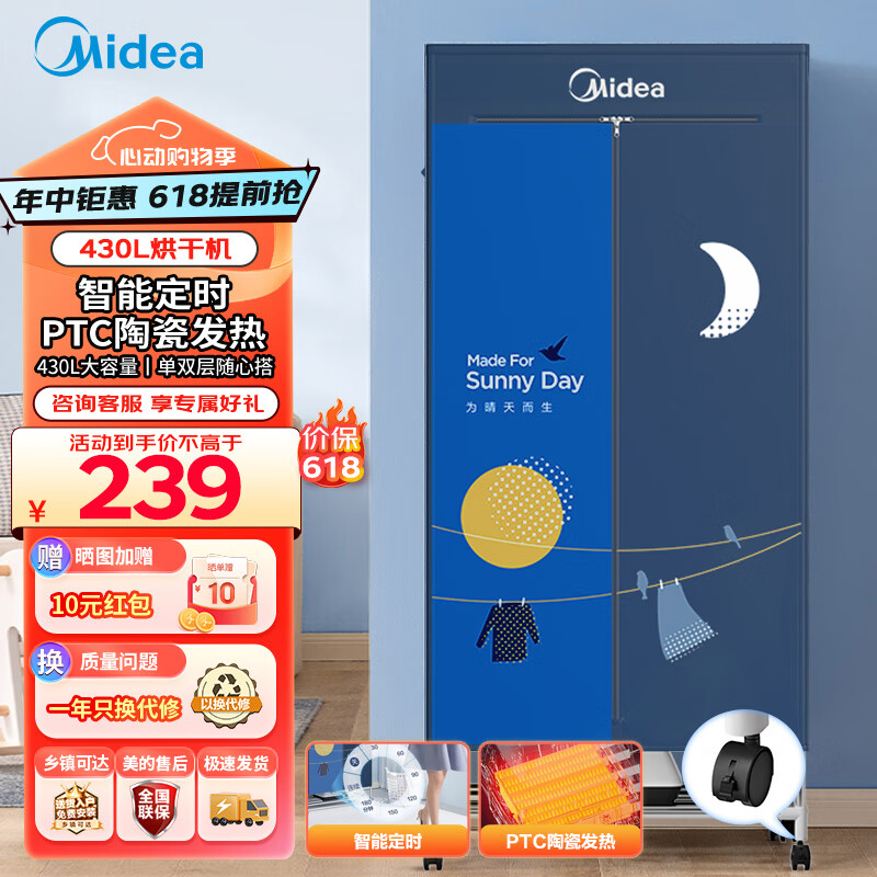 美的(Midea)烘干机家用小型干衣机婴儿衣物暖风烘衣机风干机30斤双层大容量定时烘干小型衣物护理机HBG-JQ3价格:239.00元!