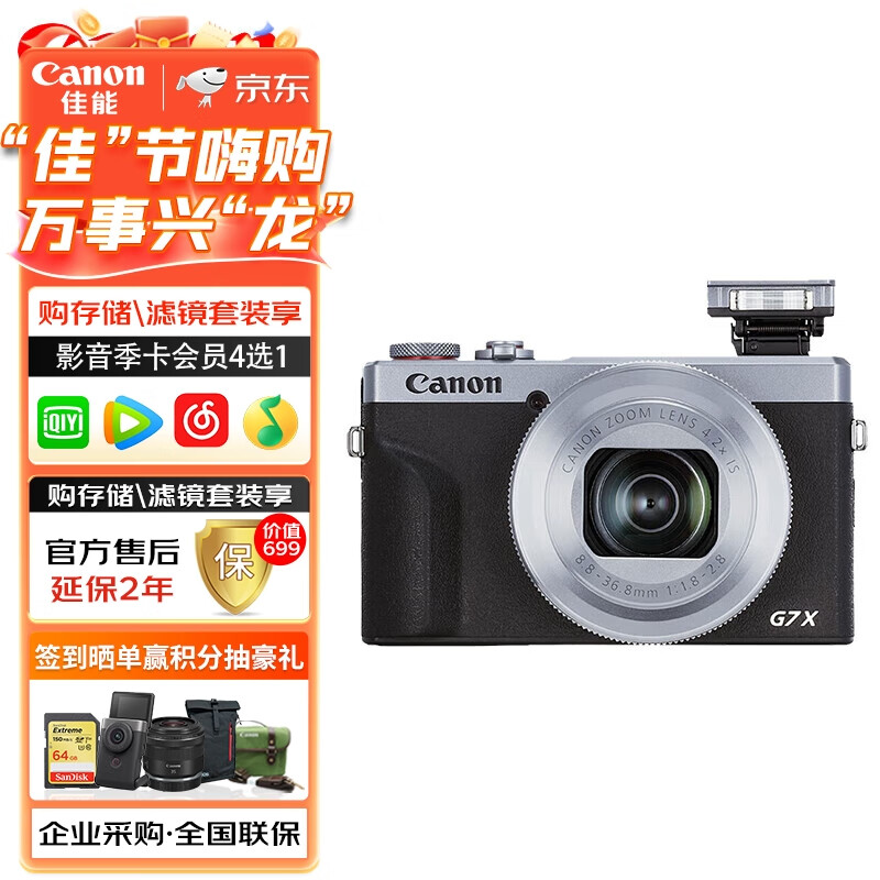 佳能(Canon)PowerShot G7 X Mark III 【银色】扫街旅拍套装价格:7899.00元!