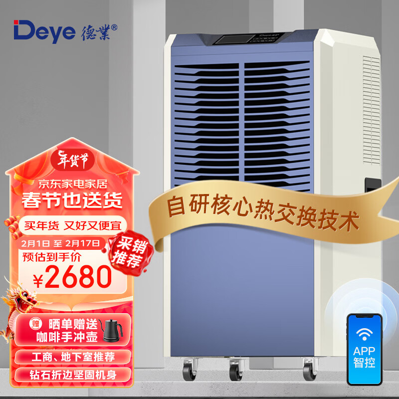 德业(Deye)工业除湿机/抽湿机 适用300平方米 别墅地下室工业商用仓库车间大功率除湿器DY-8138C价格:2977.00元!