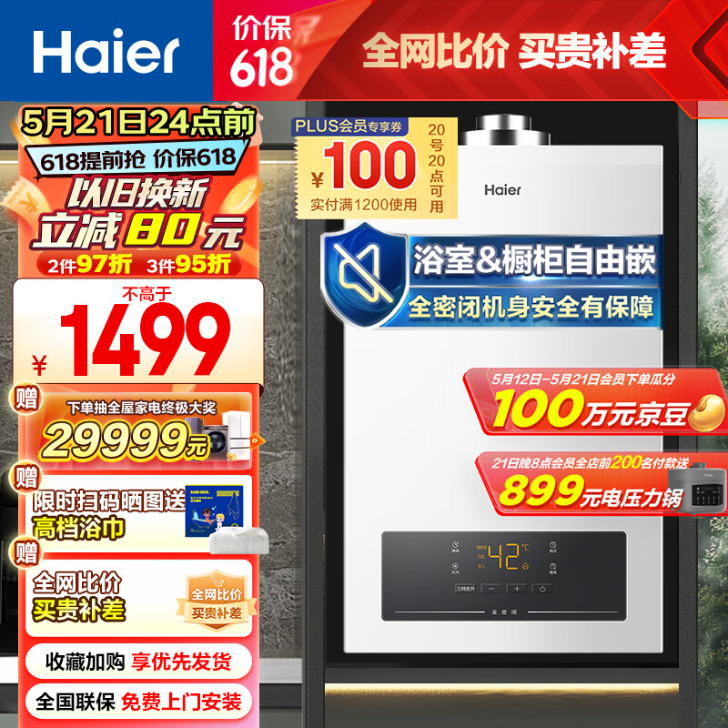 海尔(Haier)13升燃气热水器天然气 平衡式 室内平衡式 精控恒温 智能变升浴室安装 JSG25-13ZH3(12T)价格:1599.00元!