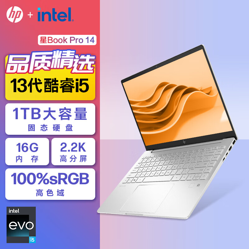 惠普HP 星Book Pro 14英寸轻薄笔记本电脑(EVO认证 13代酷睿i5-1340P高性能处理器 16G 1TB 2.2K护眼屏)月光银价格:4899.00元!