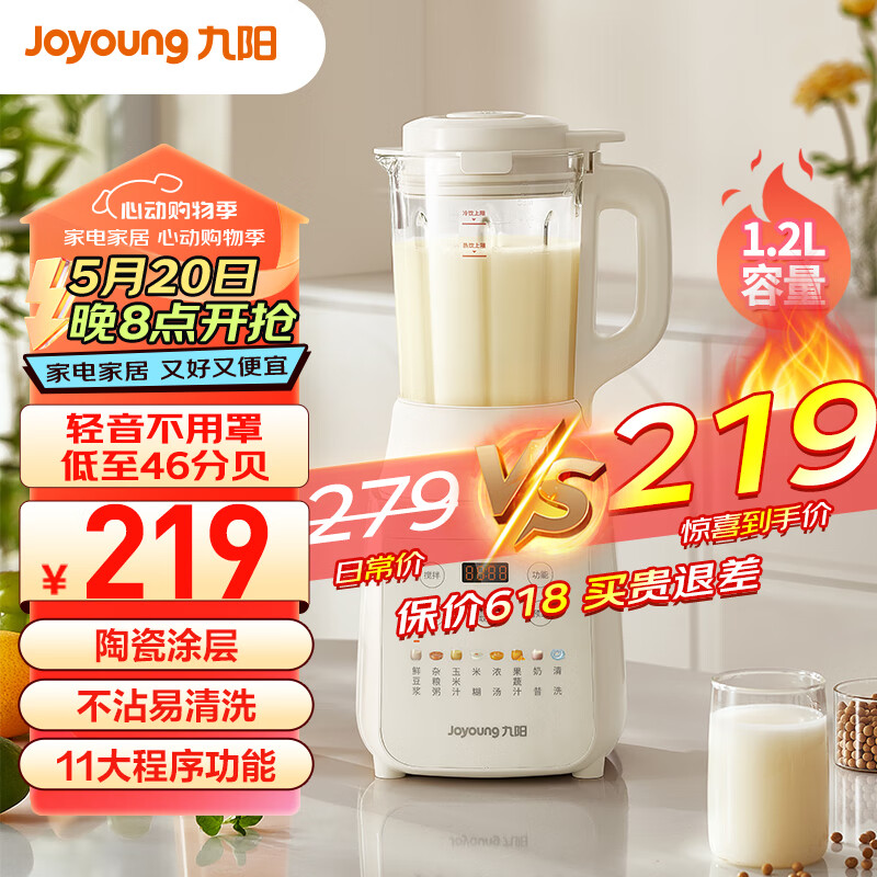九阳破壁机家用豆浆机 柔音降噪 榨汁机料理机 纤薄精巧小容量 破壁机L12-P109价格:219.00元!